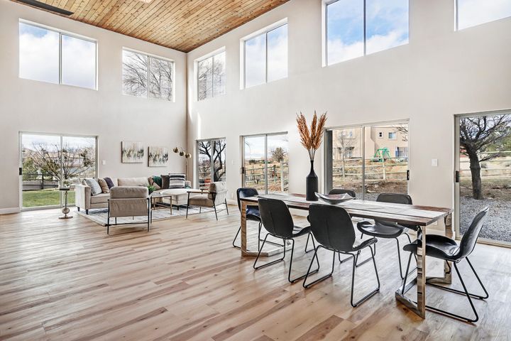 North Albuquerque Acres (NAA) originally consisted of one acre or more parcels that allowed horses, stables and farm animals per the original zoning. Today, those sites are grandfathered in while there are still one acre sites, more gated and non gated communities have been developed offering a variety of architectural homes, usually on larger lots with individual or shared wells.